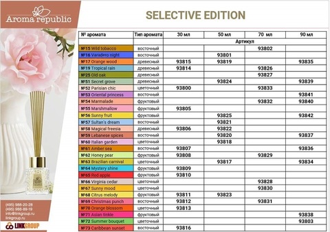 Состав: универсальная основа для ароматизаторов воздуха >= 30%; 15%<= ароматическая композиция <30%.