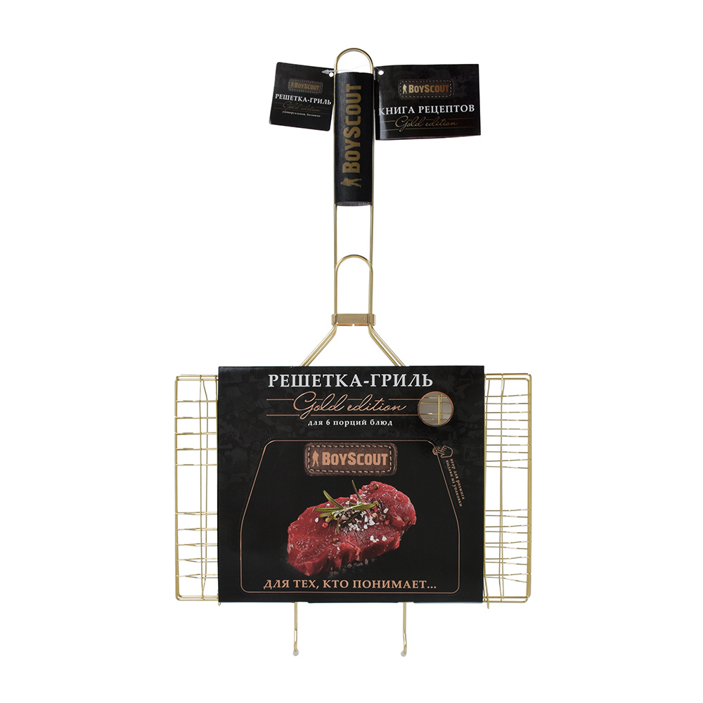 Описание: Решетки для барбекю BoyScout в отличие от шампуров универсальны. Они подходят не только для мяса, рыбы, бифштексов, курицы, но и для сарделек, сосисок, овощей и прочего. Мы предлагаем решетки для барбекю с антипригарным и хромированным покрытием, а также решетки из нержавеющей стали. Решетки имеют деревянные ручки, которые не нагреваются при использовании. Разнообразие размеров и форм позволяет Вам без особых хлопот приготовить вкусную еду в любых количествах. Размер: 54(+5) x 33 x 22 x 2,5 cм.