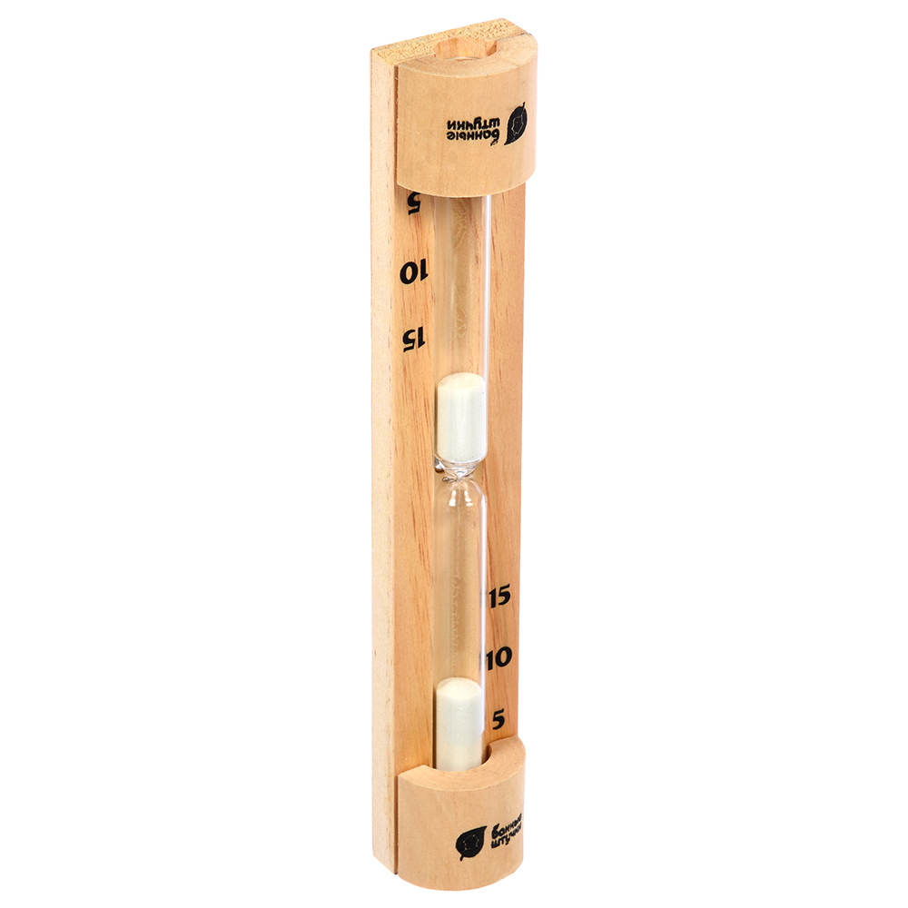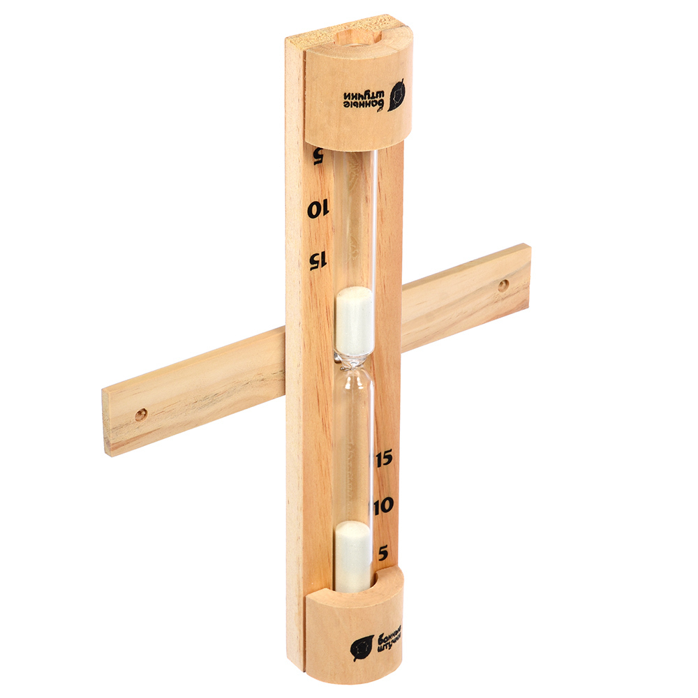 Песочные часы, закреплены в деревянном корпусе. Удобны для использования в бане или сауне.