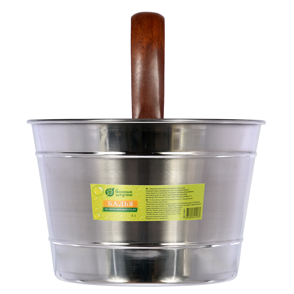 Долговечная, универсальная бадья для бани или сауны, с деревянной ручкой, которая защитит ваши руки от ожогов.