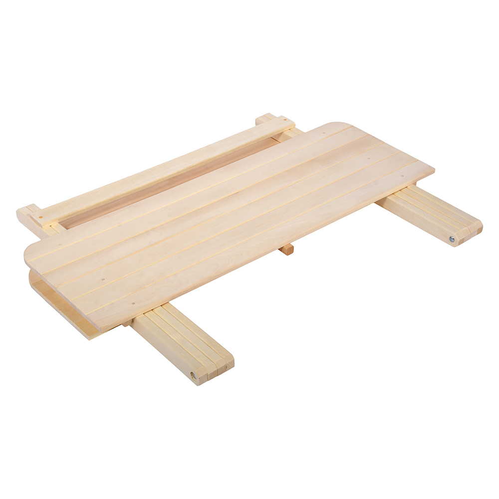 Деревянный, шлифованный стол из липы хорошо дополнит интерьер вашей бани или сауны.